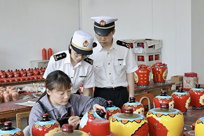 图为:绍兴海关关员在“女儿红”酒厂开展调研 杨燕华/摄